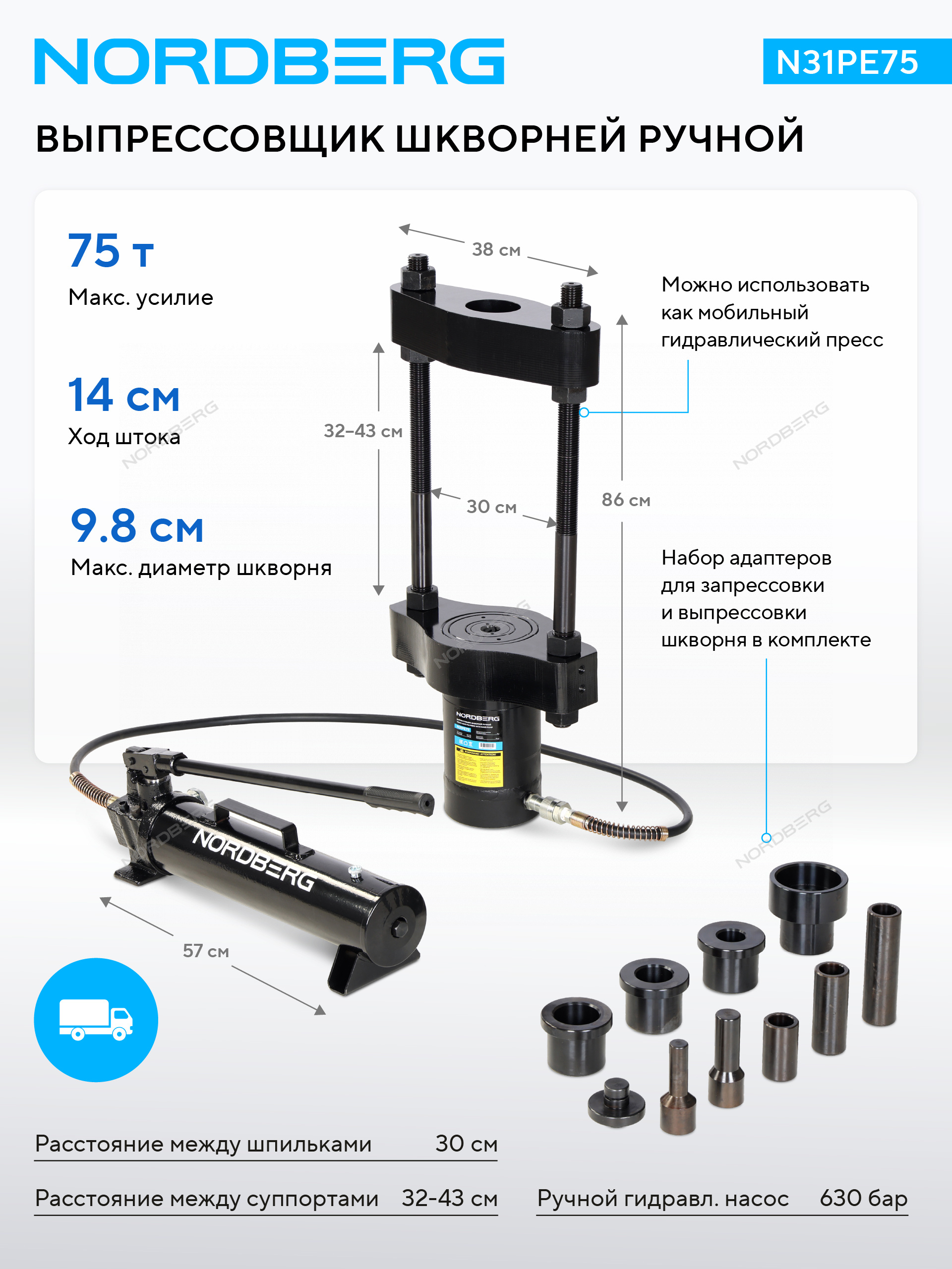 NORDBERG N31PE75 — это профессиональное решение для эффективного и безопасного обслуживания ходовой части грузовых автомобилей, автобусов и спец техники.