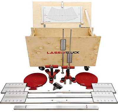 Лазерные стенды LaserTruck предназначены для измерения и регулировки углов установки колёс и осей коммерческого транспорта. Используя метод измерения относительно центральной линии автомобиля выставляется центральное положение рулевого колеса. Это одна из основных процедур, наряду с регулировкой схождения колёс, которые необходимо производить при выполнении работ по регулировке углов коммерческого автотранспорта. Система позволяет измерить: